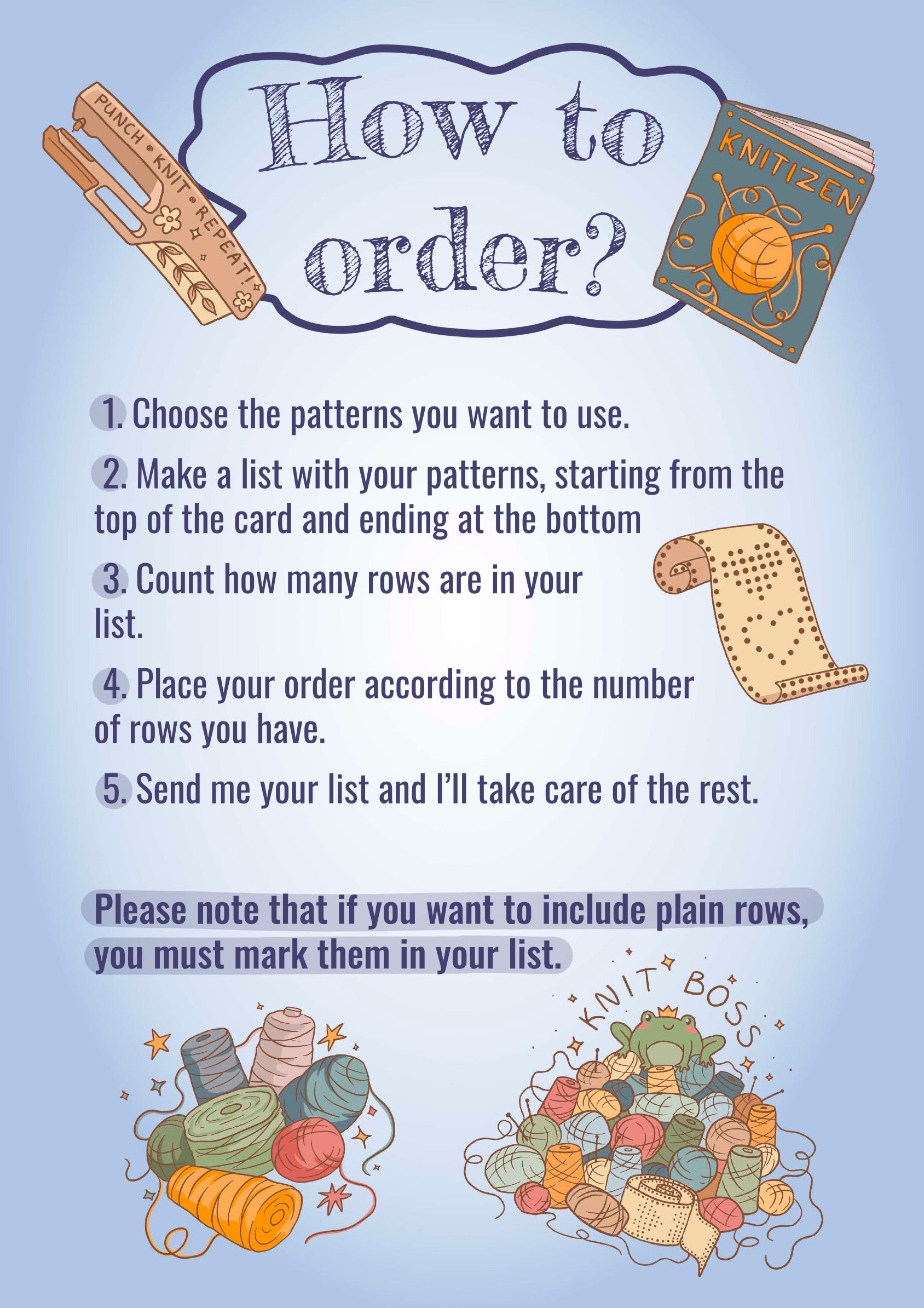 Create and order your own physical punch card for 24-stitch manual knitting machines.